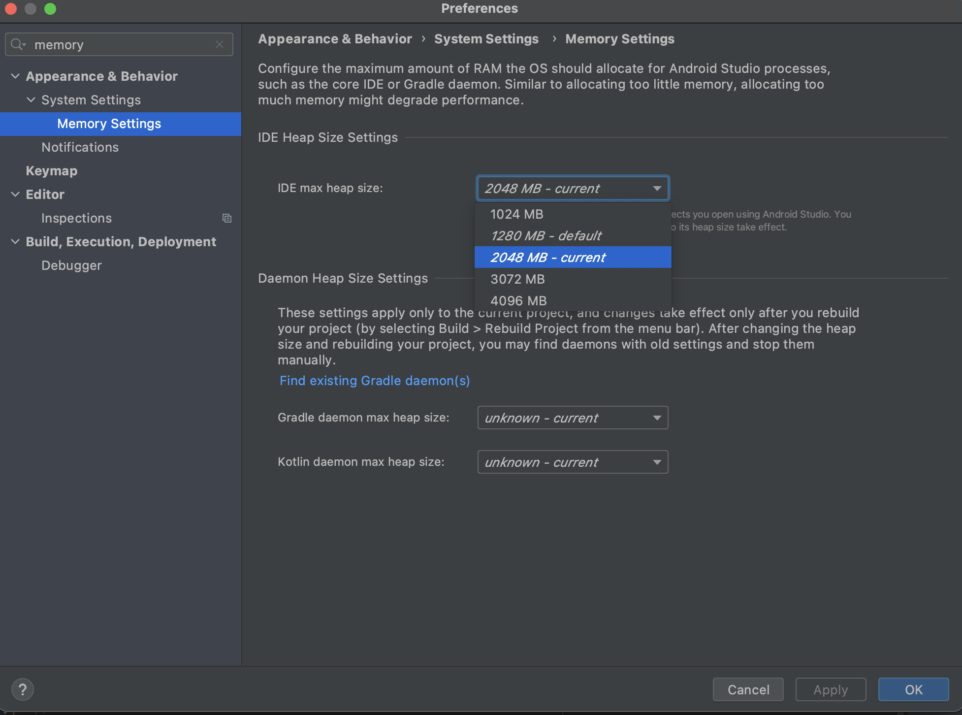 [Flutter] androidstudio memory setting 본문