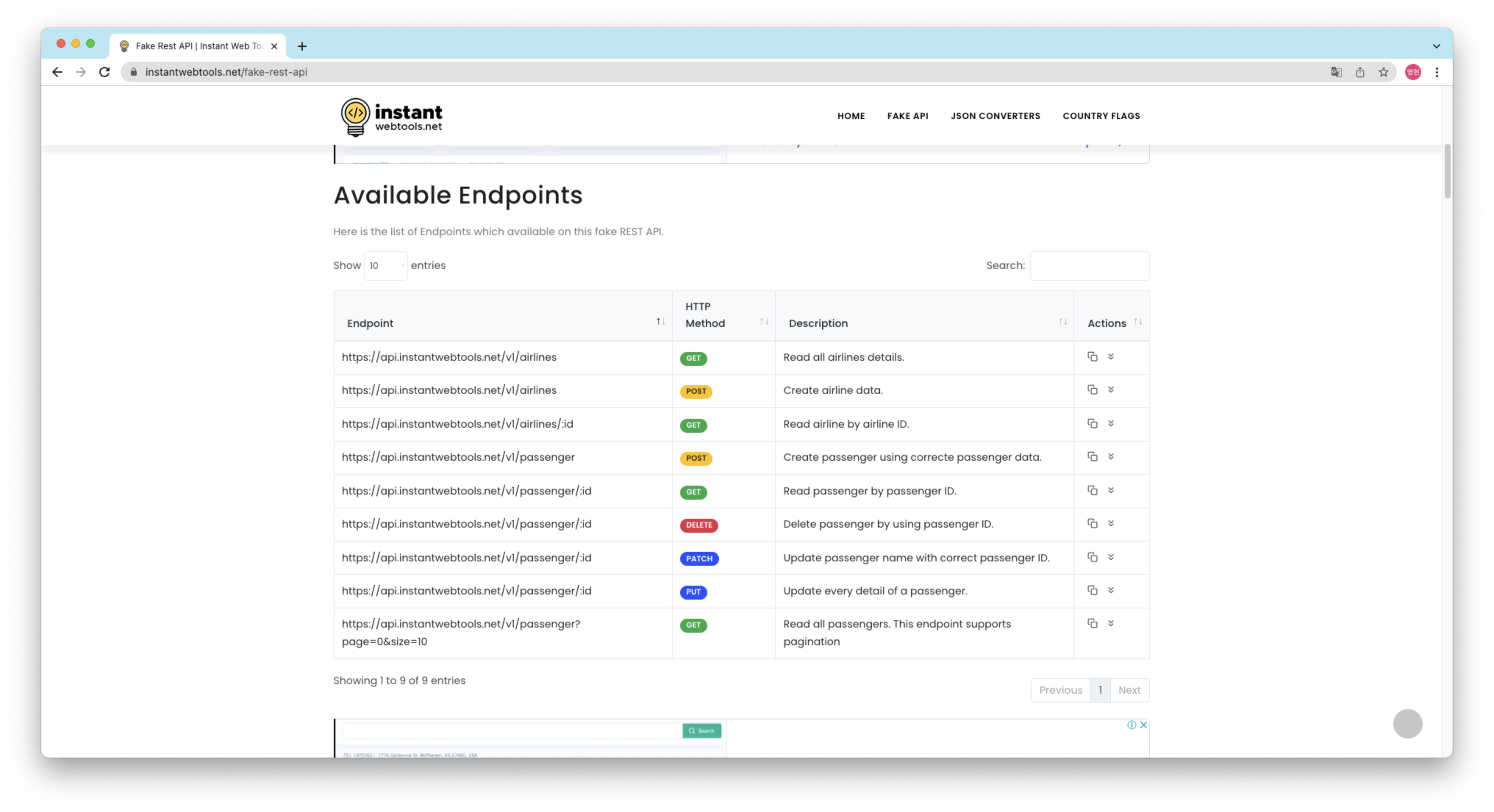 Fake Rest API | Instant Web Tools