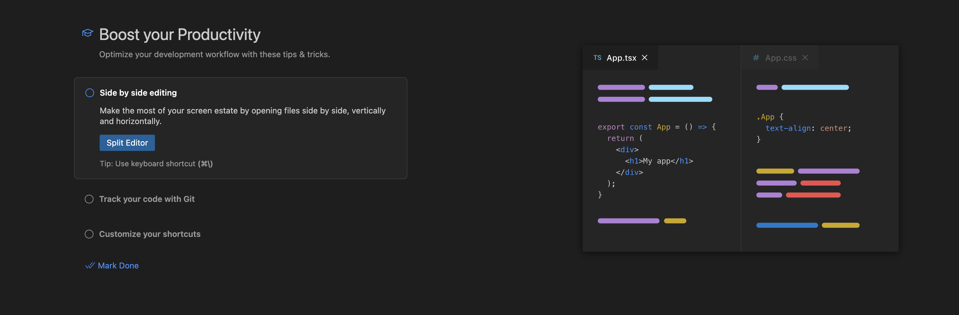 10. 에디터를 양쪽으로 나란히 열어서 한번에 볼수있따 (option + \)