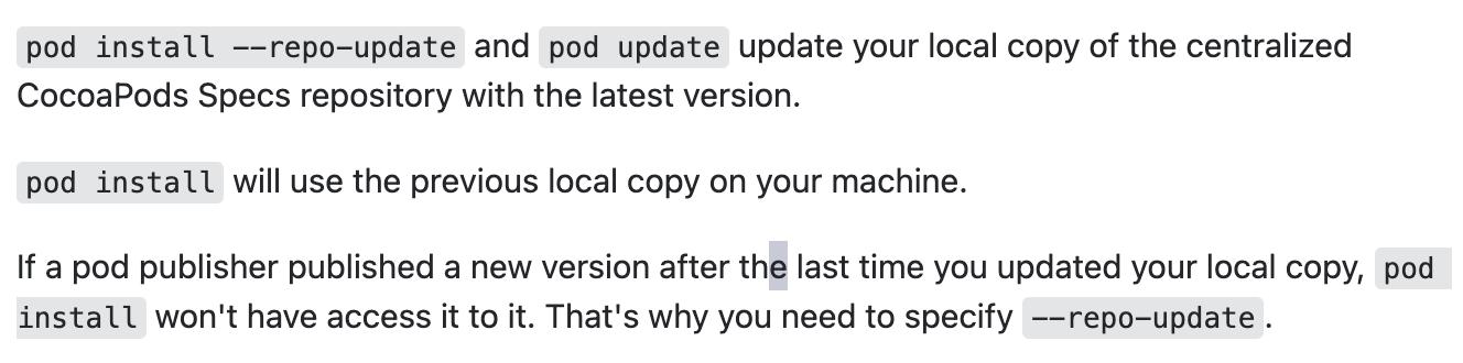 pod install --repo-update : cocoapods repository를 최신버전으로 업데이트