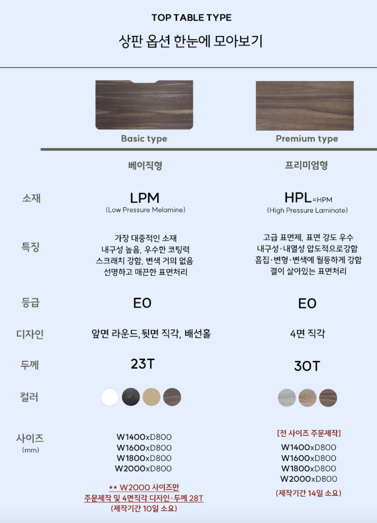 - 나무 색이 아예 없는걸로 (이전에는 상판무늬가 라이트우드였는데 생각보다 별로였음)