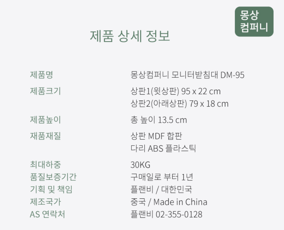 - 사이즈: 상판 95x22 하판 79x18 높이 13.5