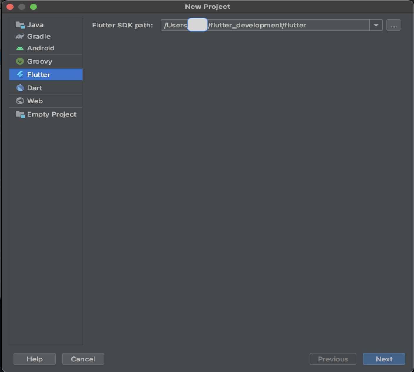 Flutter 선택 후 FlutterSDK path 찾기