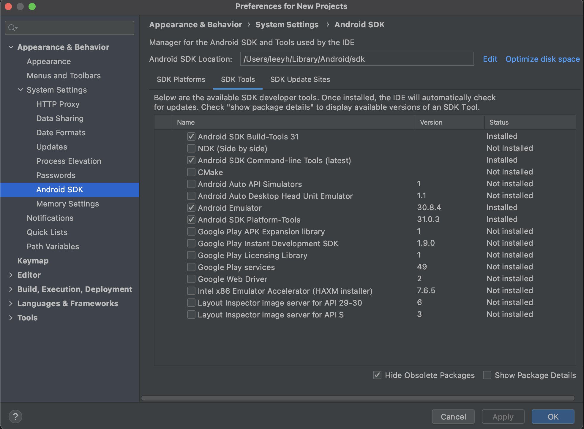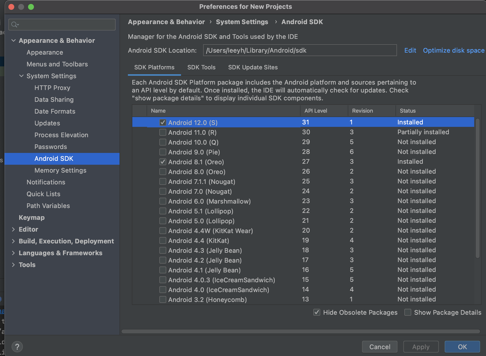 <sdk 설치현황>