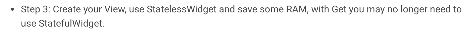 3단계: View를 만들고 StatelessWidget을 사용하고 RAM을 절약하세요. Get을 사용하면 더 이상 StatefulWidget을 사용할 필요가 없을 수도 있습니다.