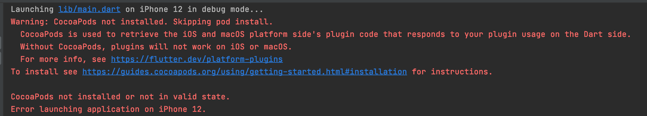 [Flutter]CocoaPods not installed. Skipping pod install. 본문